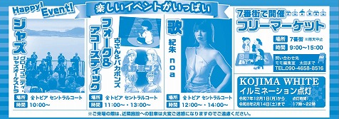 | お問合せはこちらまで 〒711-0921 岡山県倉敷市児島駅前1-100 ナイカイ第一ビル8F 児島商工会議所内 児島駅前三白市実行委員会事務局TEL.086-472-4450 FAX.086-474-3506 |
